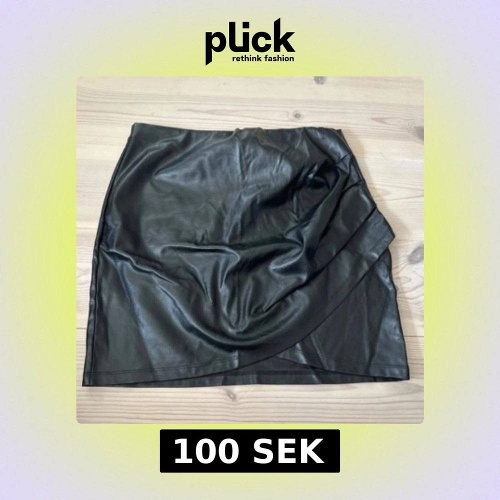 Snygg svart kortkjol från NLY One i skinnimitation. Kjolen har omlott-look framtill och en stilren, minimalistisk design. Perfekt för dig som gillar edgy vibes och vill sticka ut lite extra. Passar till både boots och sneakers.