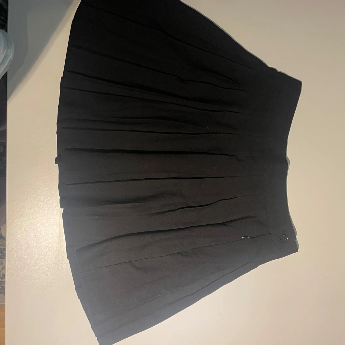 Säljer en svart plisserad kortkjol från FB Sister i storlek M. Kjolen har snygga veck och stängs med dragkedja och knapp i sidan. Perfekt för dig som gillar klassisk stil med en modern twist.