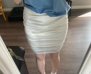 säljer denna vita kjolen i storlek M aldrig använd säljer för 45kr
