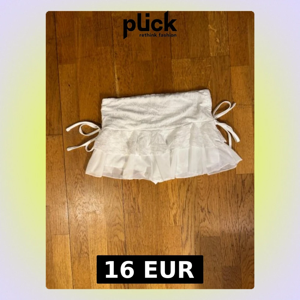 Supersöt vit minikjol med spetsdetaljer och volangkant. Kjolen har knytband på sidorna och ett lager av transparent mesh över spetsen för extra fluffig look. Perfekt för dig som gillar romantisk och feminin stil.