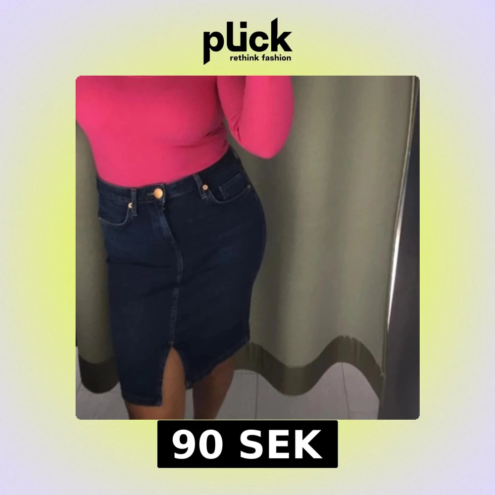 Snygg mörkblå jeanskjol i klassisk denim med hög midja och slits framtill. Kjolen har fickor både fram och bak samt gylf med knapp. Perfekt för dig som gillar en stilren och trendig look.