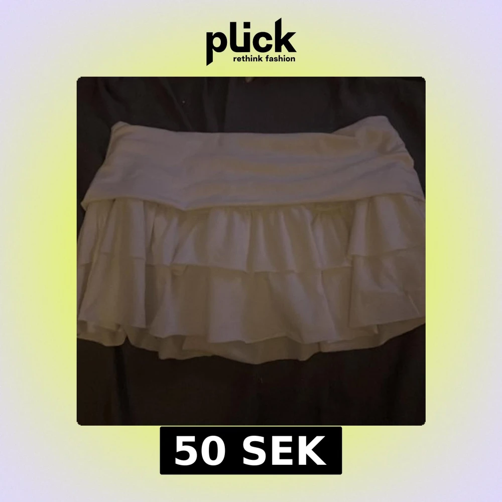Vika ner kjol, storlek m men snarare xs/s .Supersöt vit kortkjol med flera volanglager som ger en flowy och lekfull look. Kjolen har bred linning och är perfekt för dig som gillar en feminin och trendig stil. Passar perfekt till sneakers eller sandaler för en chill vibe.