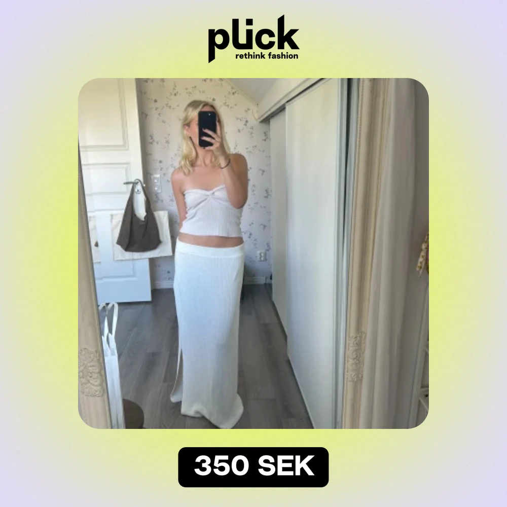 Stickad kjol från mango i storlek L. Jag har vanligtvis storlek S-M och då sitter den lågmidjad/på höften på mig. Lite missfärgningar längst ner på kanten enligt bild 3, går säkert att få bort med blekande tvättmedel.