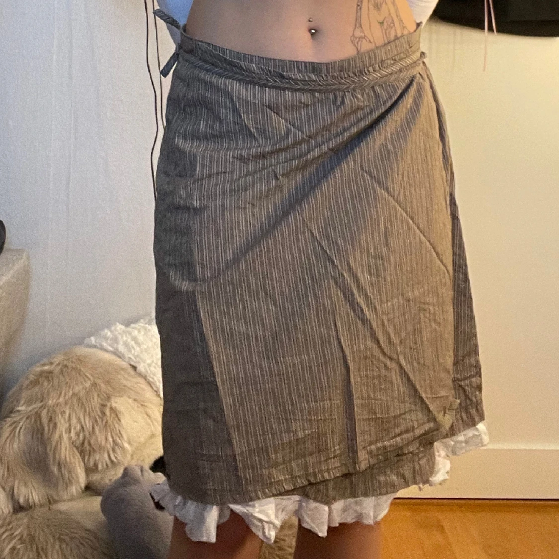Super söt midi kjol som man knyter runt midjan så man kan bestämma om den ska vara highwaist eller lowaist!!❤️ passar s-m!