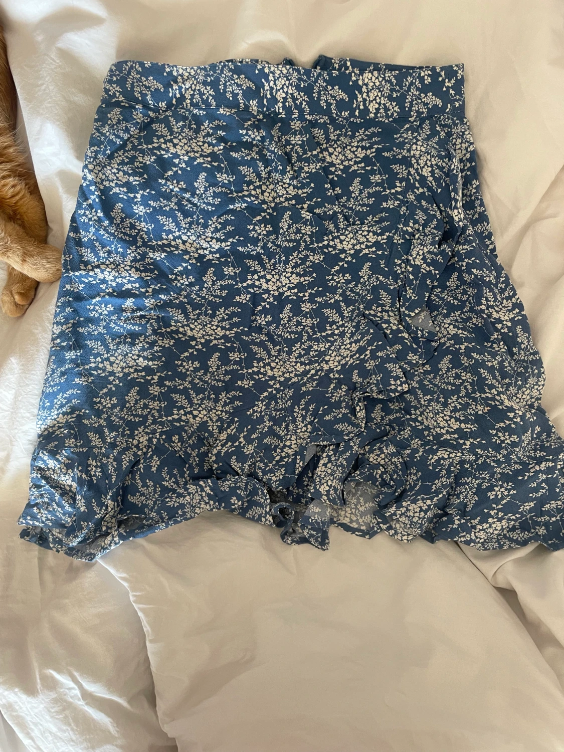Säljer min fina volang kjol från mango som tyvärr blivit förliten på mig