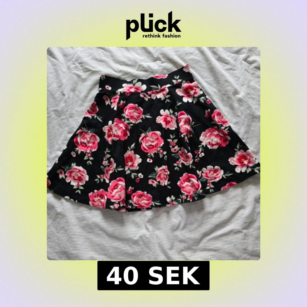 Säljer en söt blommig kjol från H&M Divided i storlek XS. Kjolen har en svart bas med stora rosa blommor och en praktisk dragkedja bak. Perfekt för att ge en färgglad touch till din outfit!