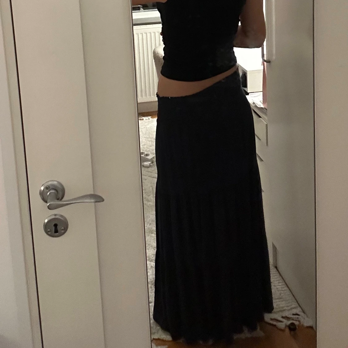En mörkblå långkjol med lätt volang nedtill. Kjolen har en flowy och luftig känsla, perfekt för dig som gillar en avslappnad men ändå stilren look. Passar snyggt till allt.