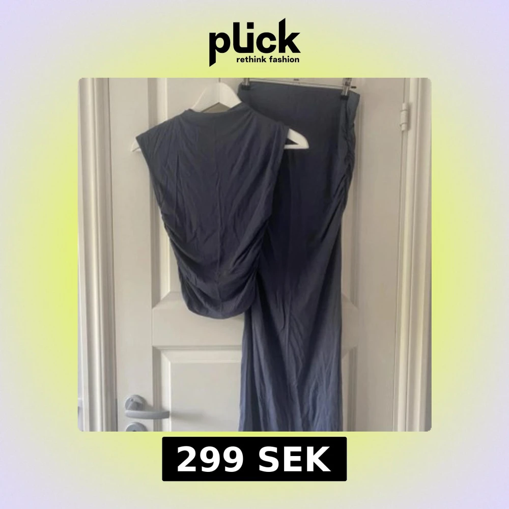 Säljer ett snyggt set från Gina Tricot i mjuk och skön viskos med skön stretch, perfekt när du vill känna dig bekväm men ändå snygg! Använd 1-2gånger. Soft Touch Ruched Skirt är en figurnära midilång kjol i en fin blågrå ton (Blue Smoke). Kjolen har rynkningar på sidorna som ger en extra detalj, på någon som är 172 cm lång går den nästan ner till golvet. Till kjolen hör Soft Touch Funnel Neck Top, en ärmlös, figurnära topp med hög krage. Den har också rynkningar i sidorna och är i en mjuk, str