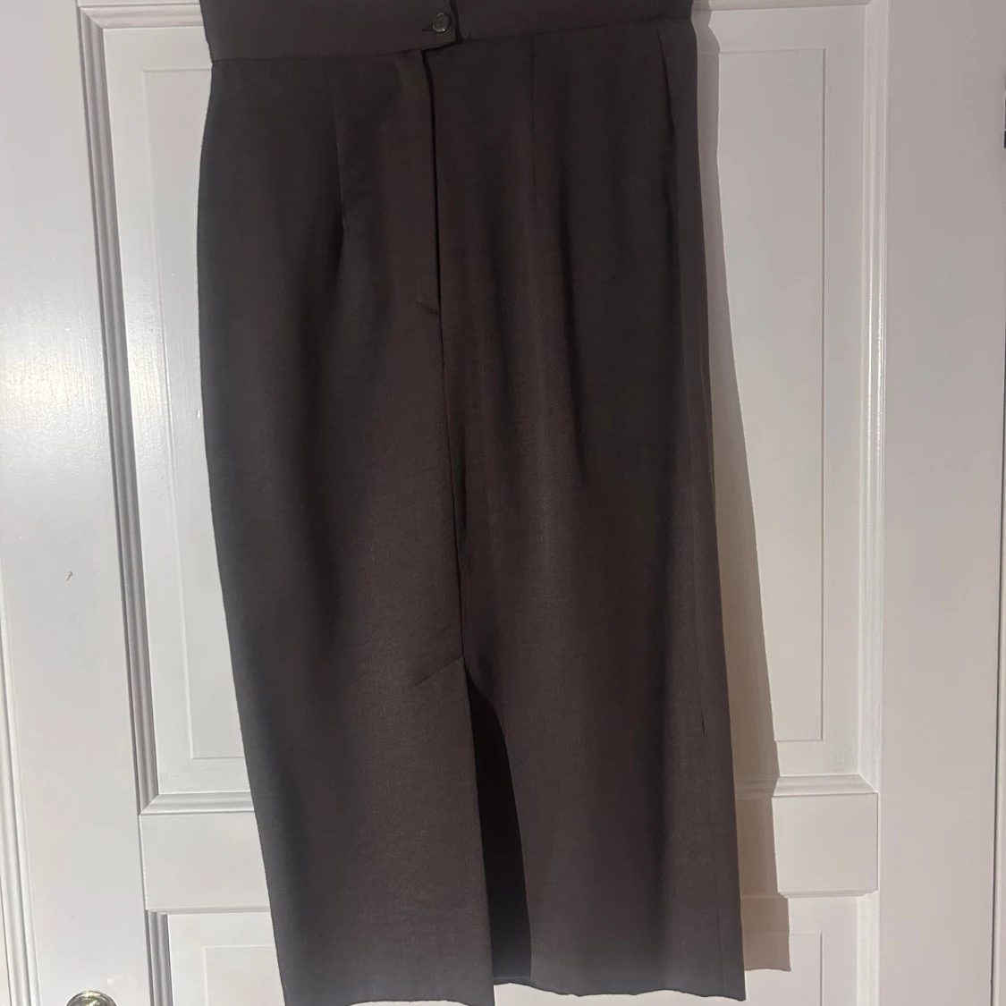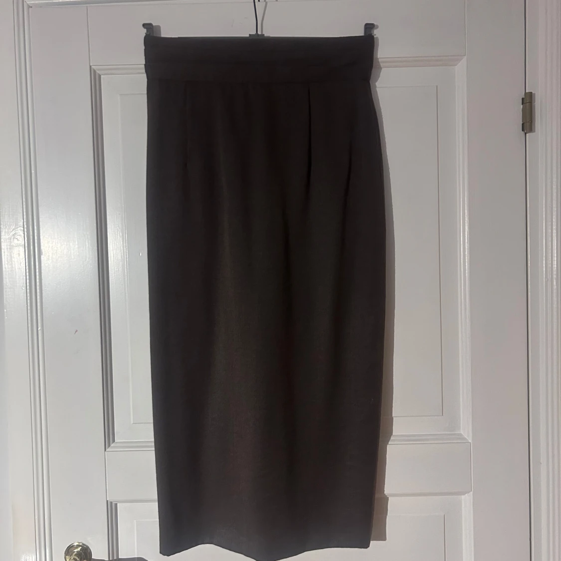 Snygg mörkbrun långkjol med hög midja och diskreta veck framtill. Kjolen har en klassisk rak passform och stängs med knapp och dragkedja bak. Tillverkad i en mjuk blandning av polyester och viskos, perfekt för en stilren look.