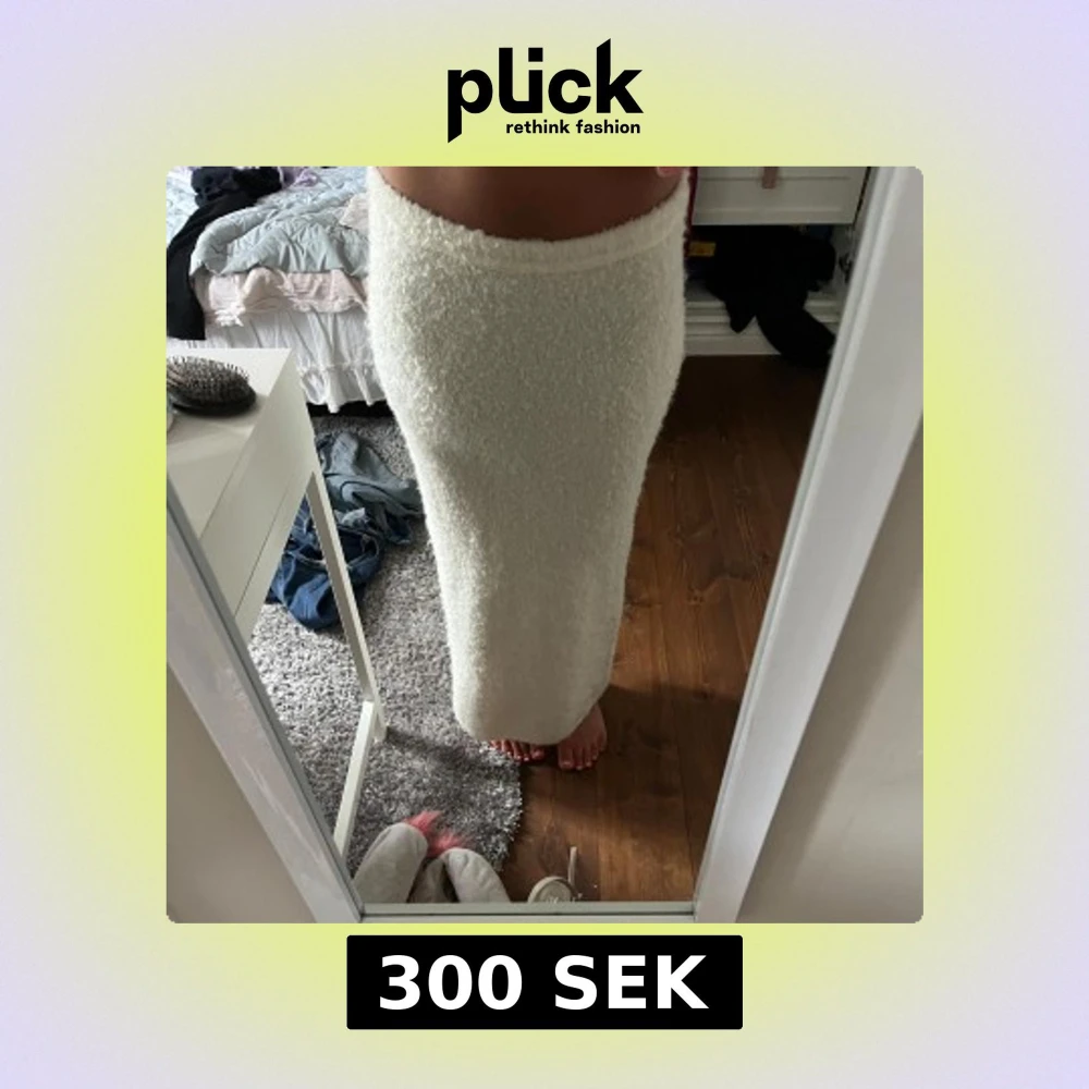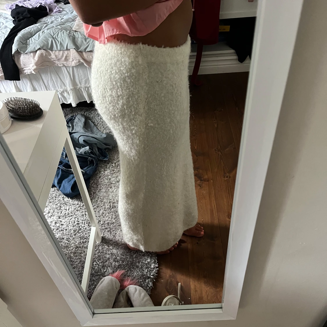 Mysig vit långkjol i stickat material med fluffig känsla. Kjolen har en rak passform. Perfekt för dig som gillar en enkel men ändå trendig look. Jätte mysigt nu till sen sommar och höst🍂. Knappt använd också