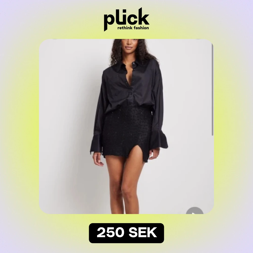 Svart kjol med textur och paljetter, medelhög midja, aldrig använd!!