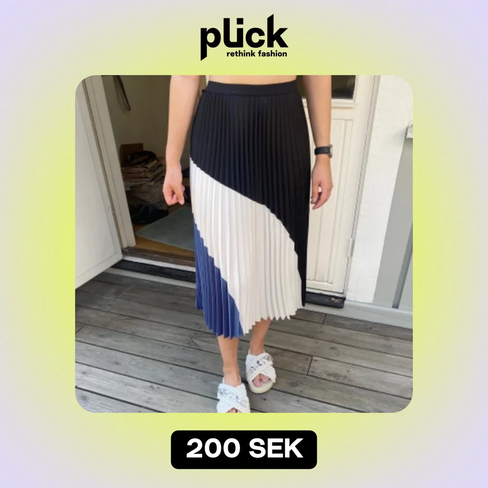Söt plisserad kjol i blått, vitt och svart. Nyskick då den har används 1 gång tidigare. Storlek 36 och resår i midjan så passar xs-m🌸🫶