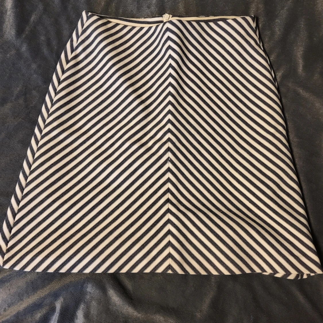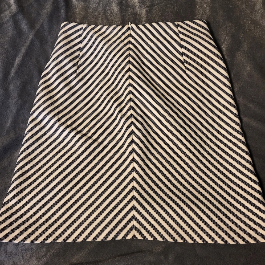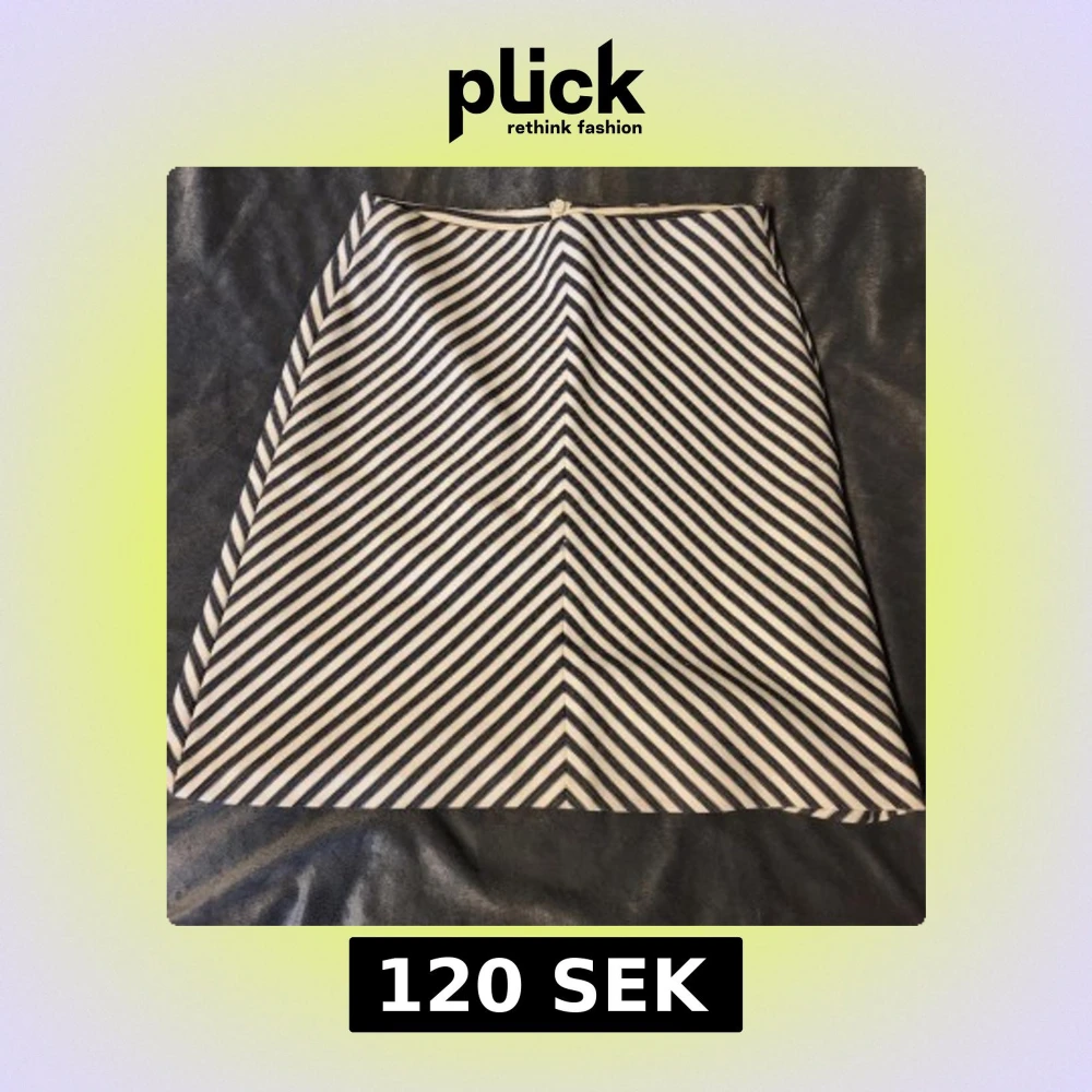 Snygg randig kjol från Reserved i svart och vit. Kjolen har ett diagonalt randigt mönster som ger en cool effekt. Perfekt för att ge din outfit en stilren touch. Omsydd så uppskattas till storlek S.