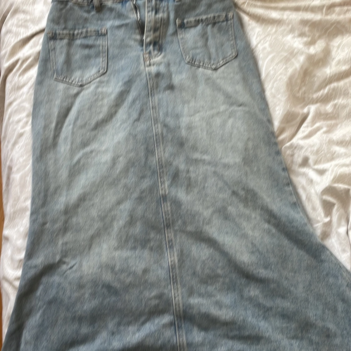 Denna kjolen är från Cider, köpt i 2023, använd (minst) 2 gånger. Vrist lång (är 162.2cm). Har en liten brun choklad fläck på baksidan. (Jag tvättar kjolen innan försäljning, pris kan diskuteras)