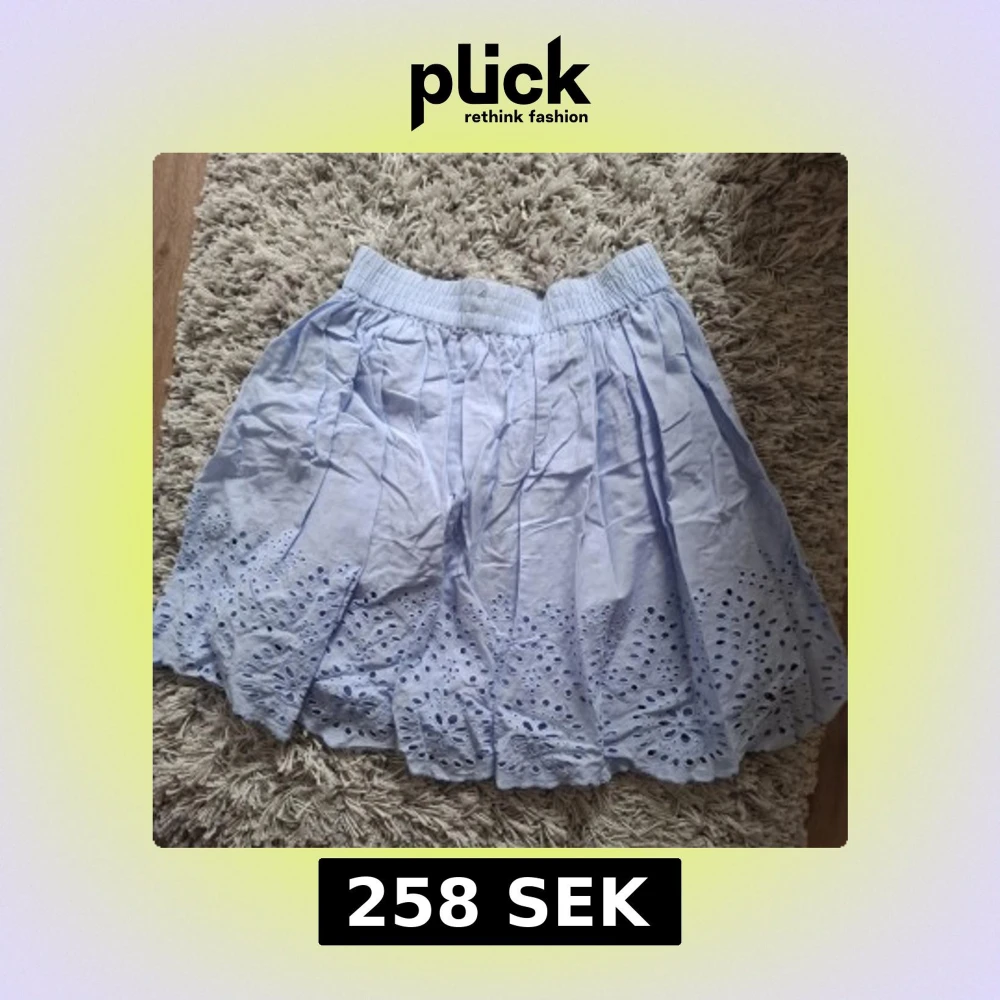 Söt ljusblå kjol med elastisk midja och broderade blommönster nertill. Kjolen är kort och har en luftig känsla, perfekt för varma dagar. Broderierna ger en romantisk touch och tyget är mjukt och bekvämt.