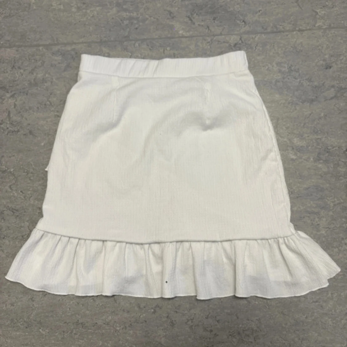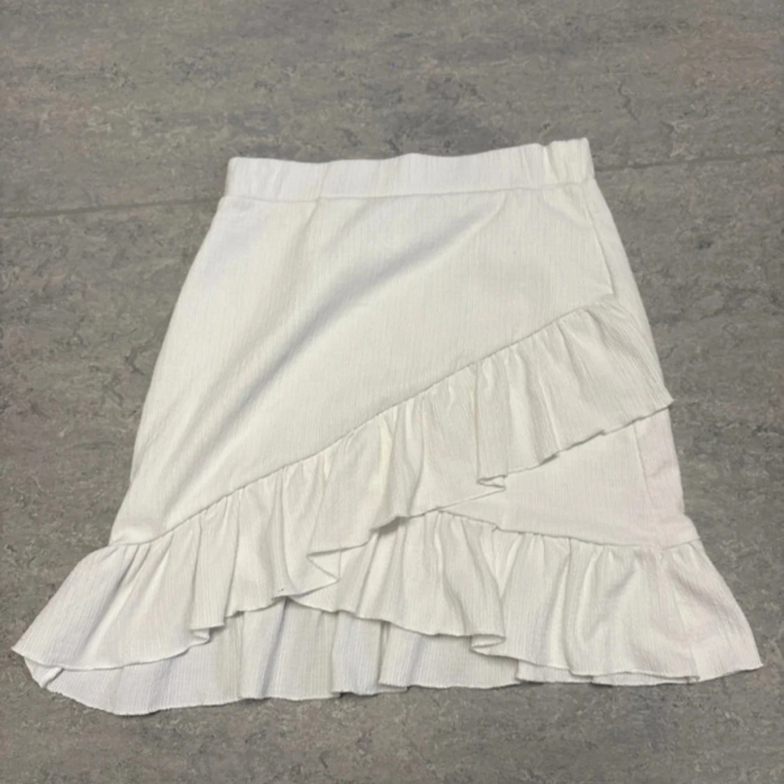 Supersöt vit kortkjol från NLY Trend med volangdetaljer och omlottkänsla framtill. Kjolen är gjord i mjuk polyester med lite stretch för skön passform. Perfekt att styla med sneakers eller sandaler för en fräsch look.