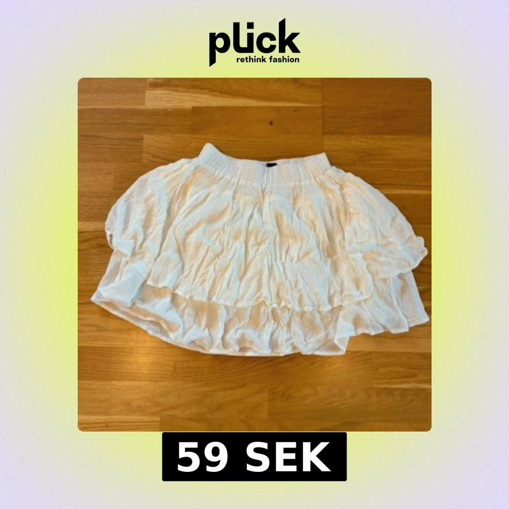 Supersöt vit kortkjol från Dazy (ASOS) med volanger och resår i midjan. Kjolen har ett luftigt och krusat tyg som ger en skön och flowy känsla. Perfekt för dig som gillar en feminin och trendig look med extra volym. Står storlek M, men passar S också!