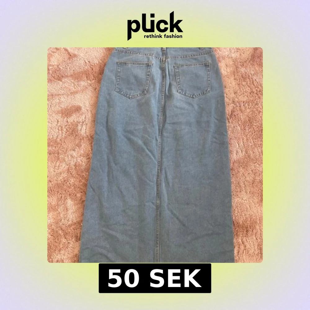 Säljer en klassisk lång jeanskjol i ljusblå denim med raka linjer och två bakfickor. Kjolen har bälteshällor och synliga sömmar för en tidlös look. Perfekt för dig som gillar enkel och avslappnad stil.