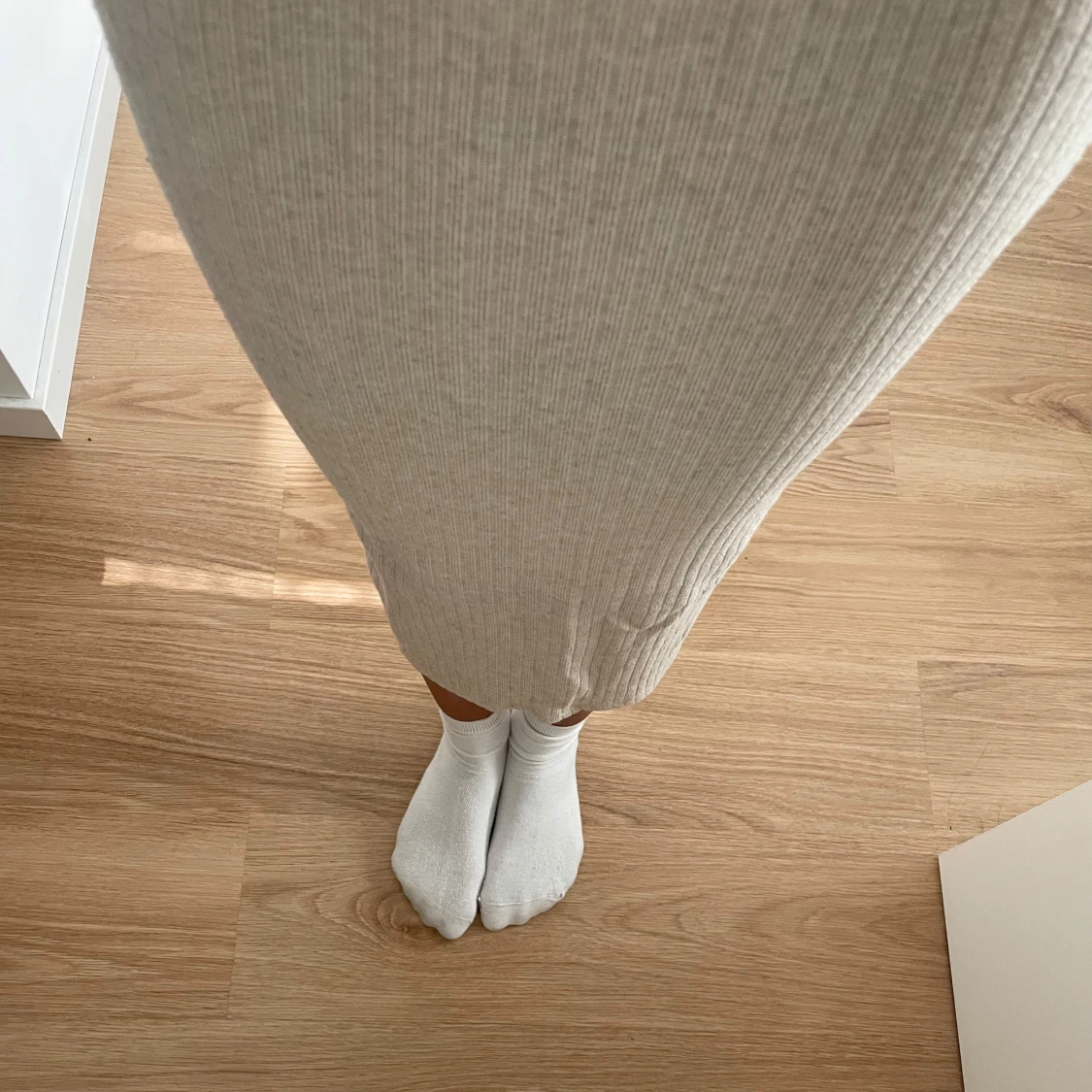 💖storlek M men skulle snarare säga S💖Säljer en beige ribbad långkjol med tight passform. 🥰Kjolen är stickad och har en mjuk, stretchig känsla som sitter snyggt på kroppen.💖lite för kort för mig som är ca 170🥰