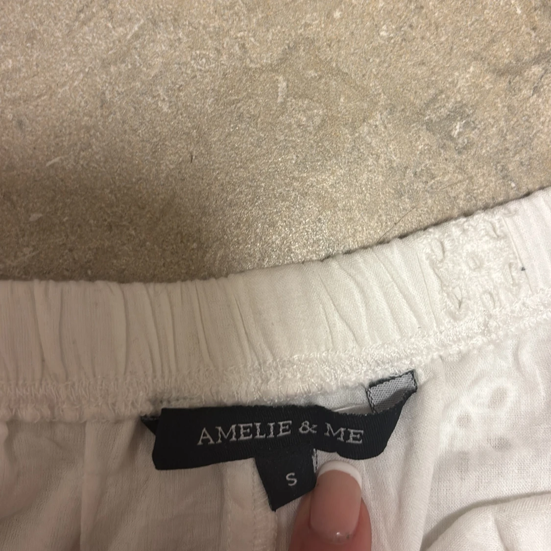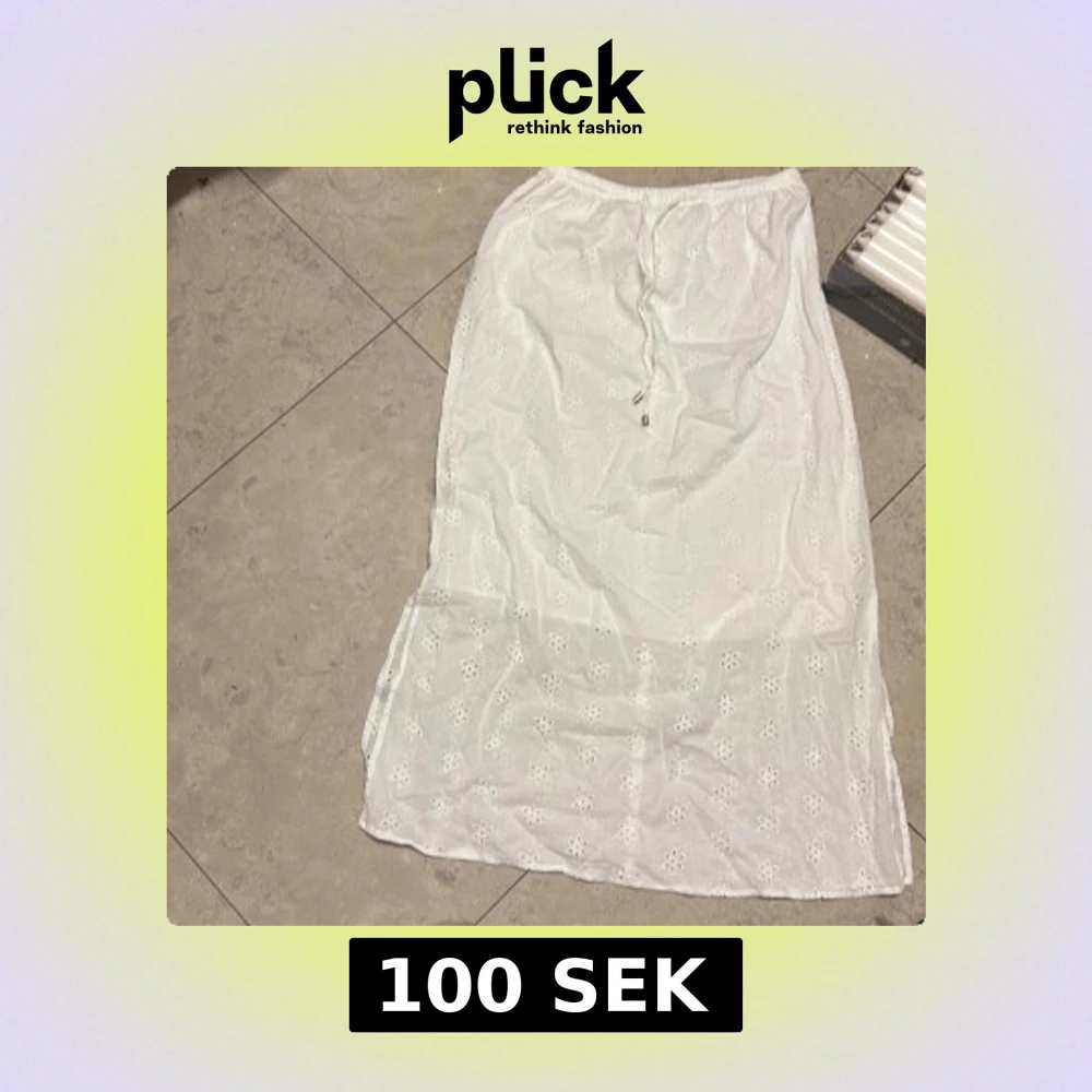 Superfin vit långkjol från Amelie & Me men köpt på Ullared med broderade blommor och snörning i midjan. Kjolen är i tunn bomull och har en luftig känsla, perfekt för varma dagar. Elastisk midja för skön passform och söt broderidetalj över hela kjolen.