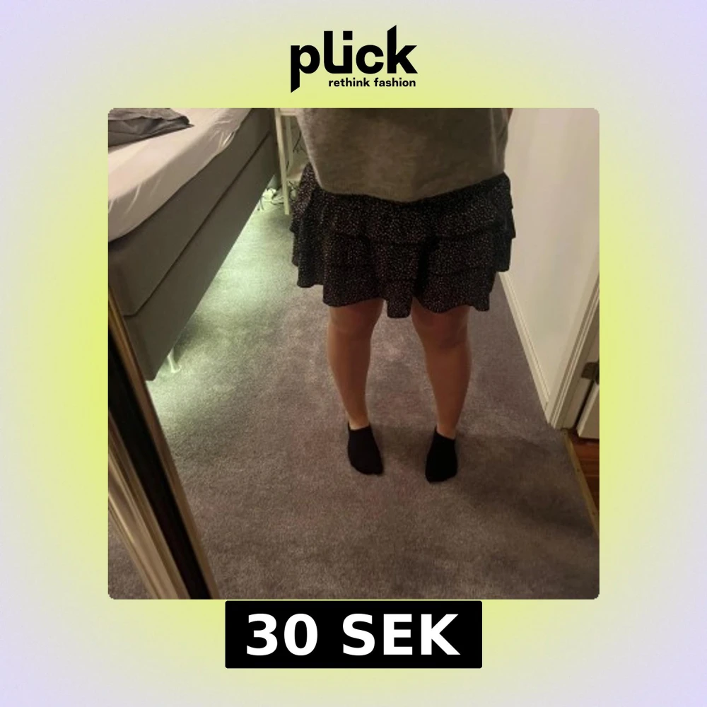 Snygg svart kortkjol med vita prickar och volanger. Perfekt för en trendig look. Elastisk midja för bekväm passform.