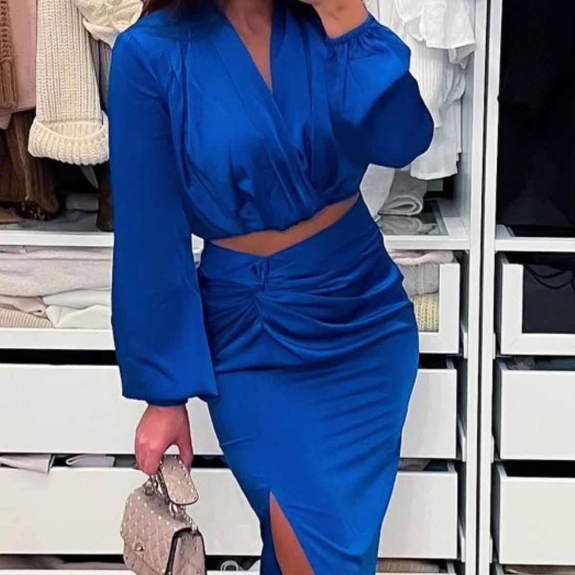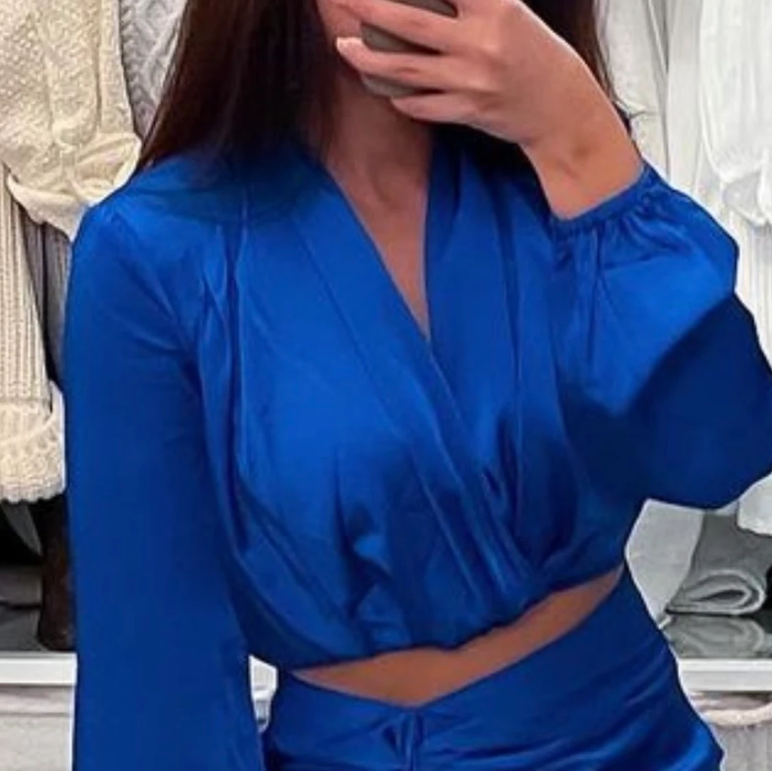 Blått ser från ASOS, aldrig använd och lapparna sitter kvar! Säljer kjolen och toppen för 400kr. Båda delarna i storlek 38