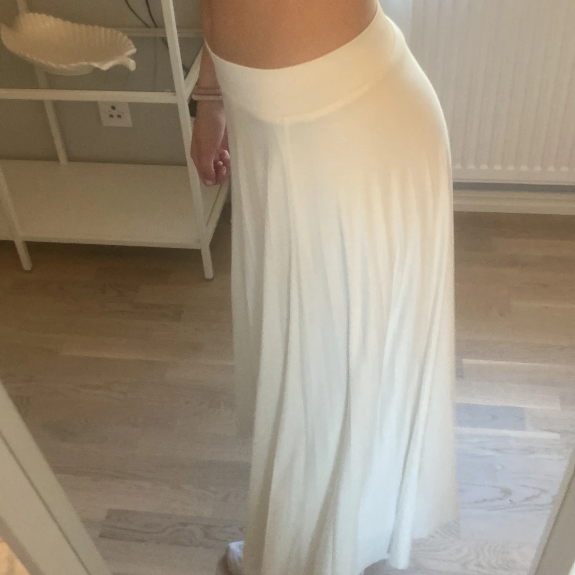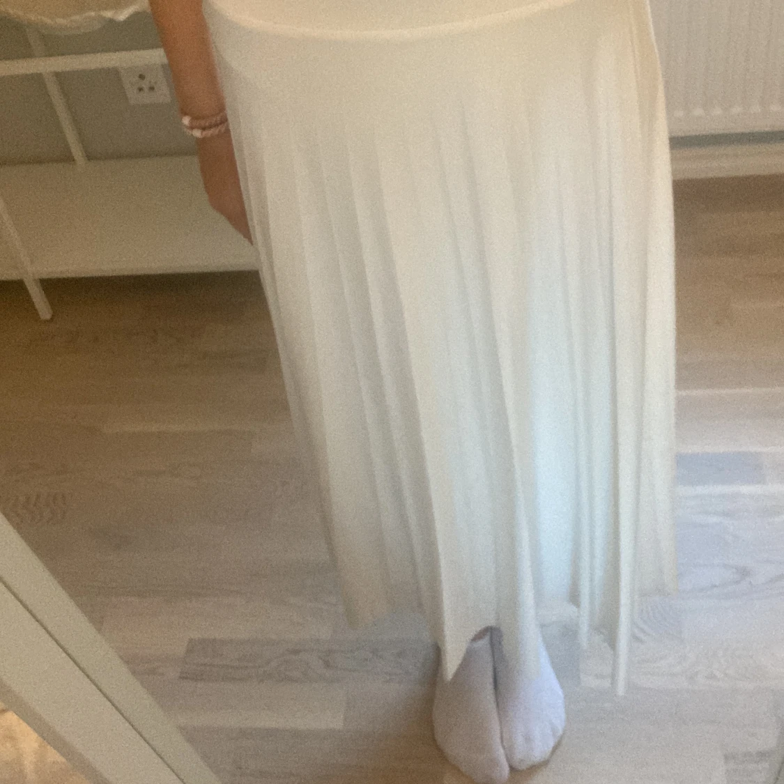 Köparen står för frakten!! Vitt fin lång kjol, poppis med långa kjolar nu å väldigt väldigt fint, helt som ny inga skador