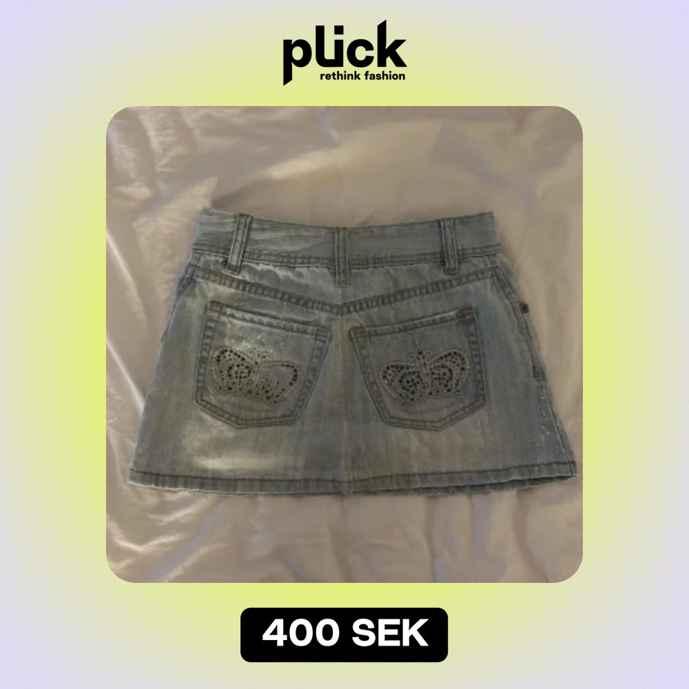Skitsnygga ljusblåa lågmidjad, kort jeanskjol med kronor på bakfickorna😍De var försmå för mig därav säljer jag dem.