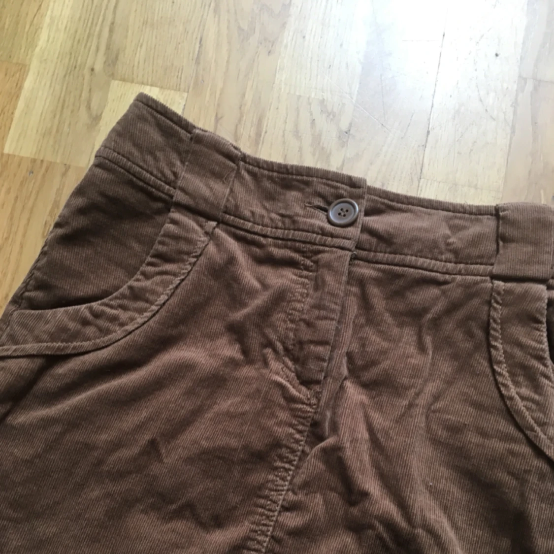 Mörkbrun manchesterkjol i storlek 34, från H&M. Sparsamt använd och bara legat i garderoben. I fint skick, kan säkert passa storlek 32 också.