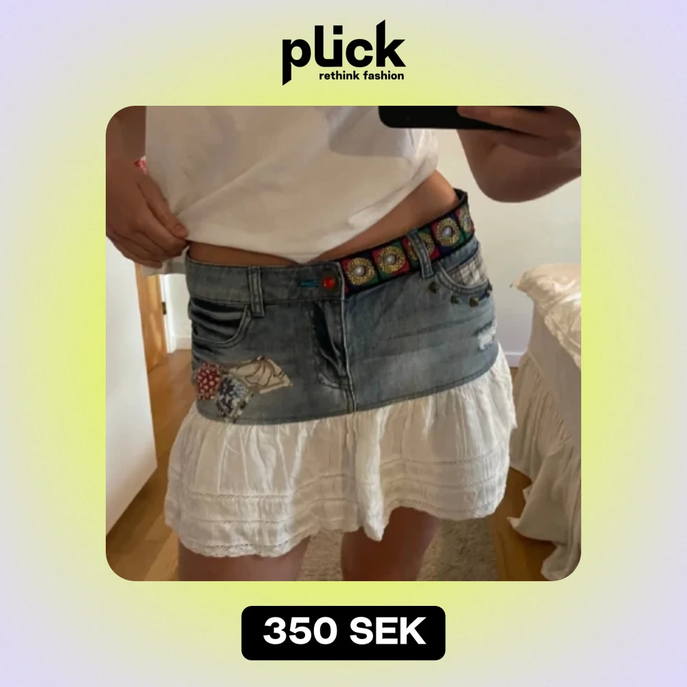 Jätte cool och unik Jeans kjol som är köpt hör på Plick för ungefär 350, gillar den jätte mycket men den passade tyvär inte mig. Midjemåttet är ungefär 38, skriv privat för mer frågor eller bilder, priset kan förhandlas💕💕