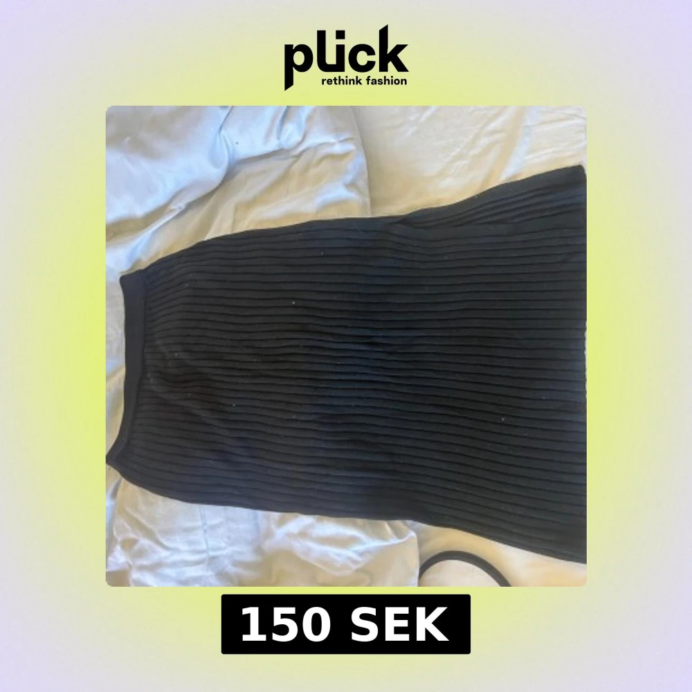 Snygg svart ribbad kjol i en klassisk design från MQ. Perfekt för en stilren look. Den är gjord av ett mjukt och stretchigt material som ger en bekväm känsla hela dagen. Lite dammig på bilden så inga fläckar! Nästan oanvänd
