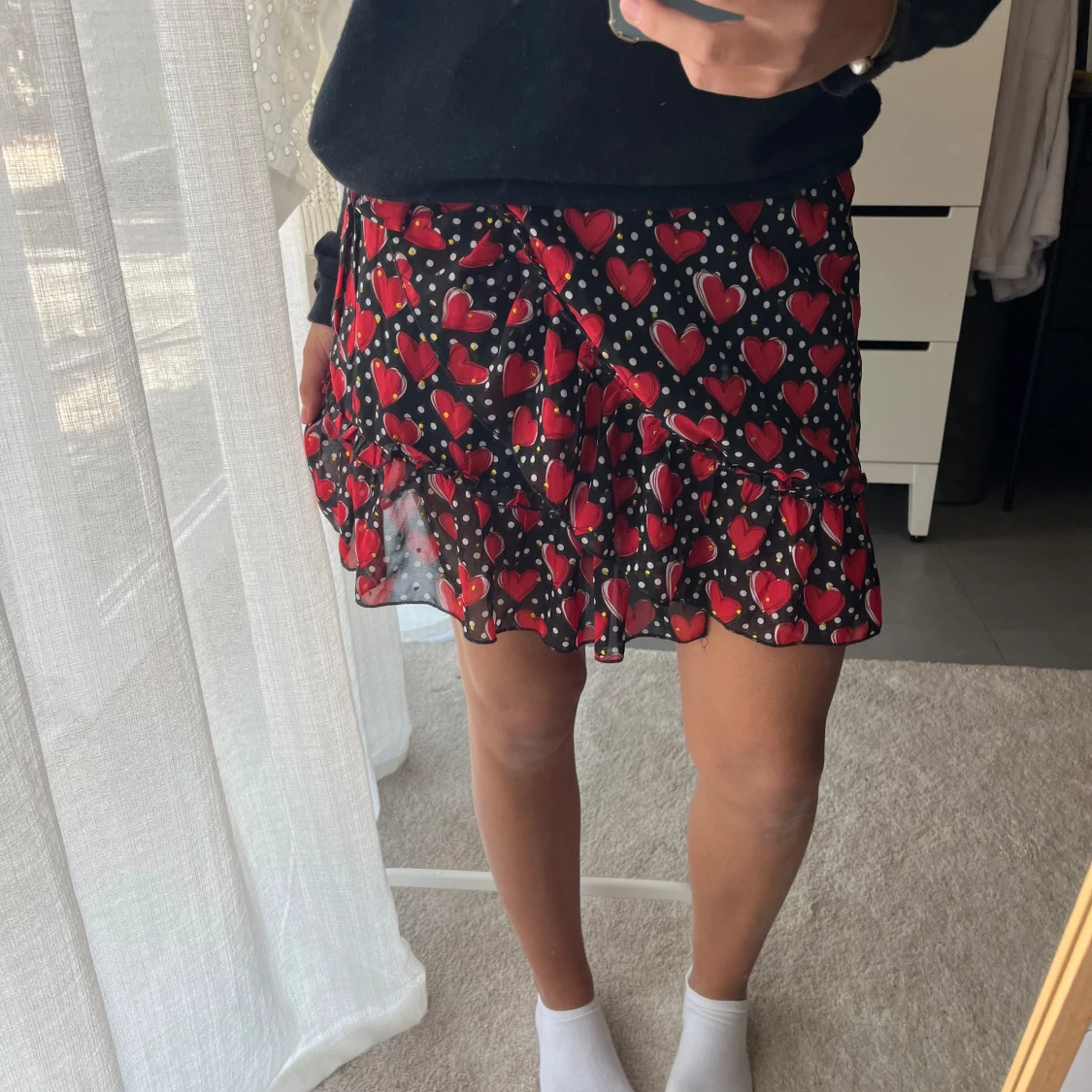 Säljer denna supersöta volangkjol! Den är omlott och man knyter i midjan så den passar XS-M.