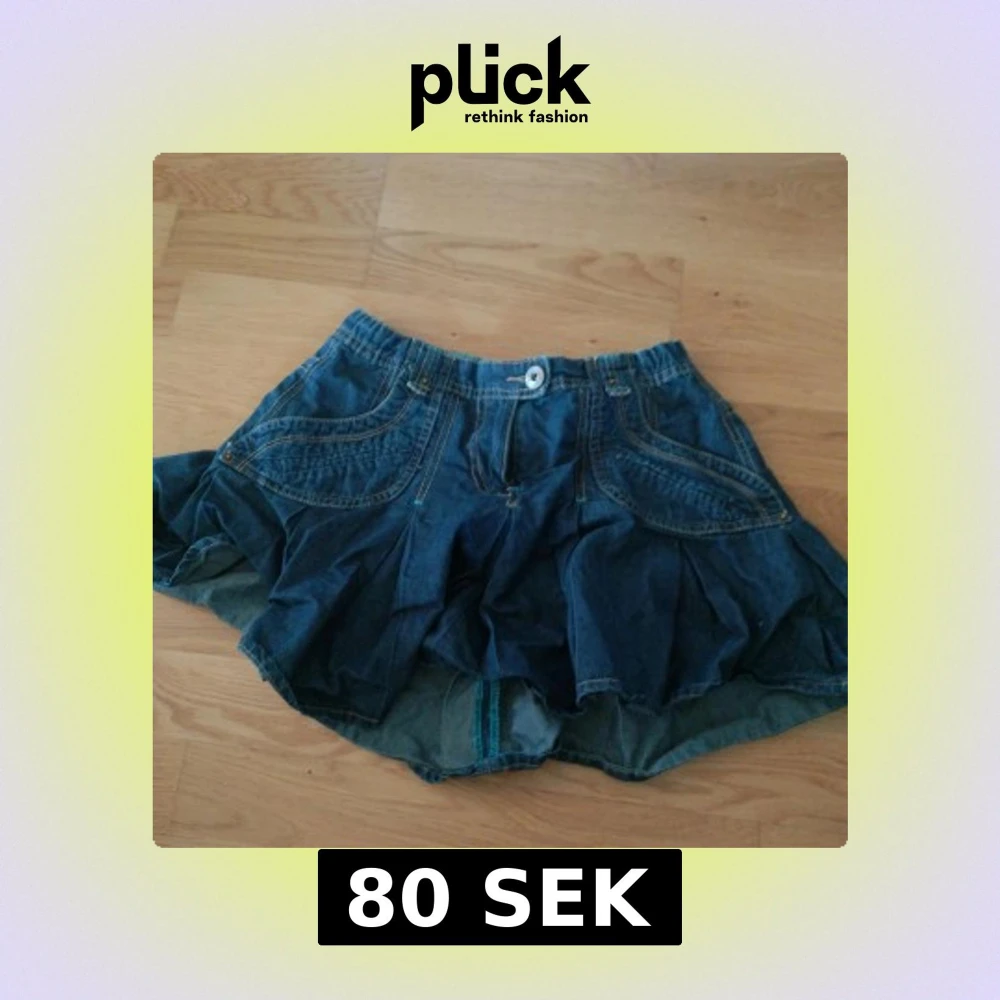Snygg blå jeanskjol från Myshirt i kort modell med coola fickdetaljer fram och bak. Kjolen har markerade sömmar och veckad nederdel som ger extra volym. Perfekt för dig som gillar en avslappnad och trendig stil. Står storlek 158 men skulle gissa att den passar som XS i vuxenstorlek💞