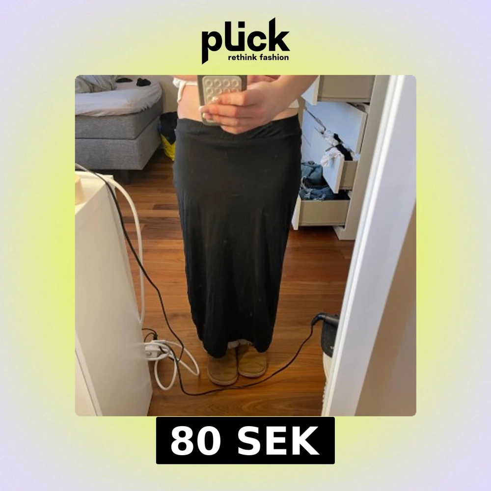 Säljer en svart långkjol från ONLY i storlek xs men har sytts upp så den är 80 cm lång. Säljer den för att den inte kommer till användning längre!🩷