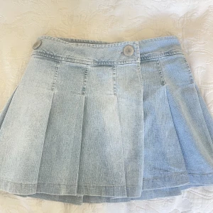 SJUKT söt jeanskjol i jätte bra skick!! Knäpps omlott med super söt volang längst ner:) köpt för 300 och aldrig använd av mig👍🏼 Möts upp i Sthlm el fraktar