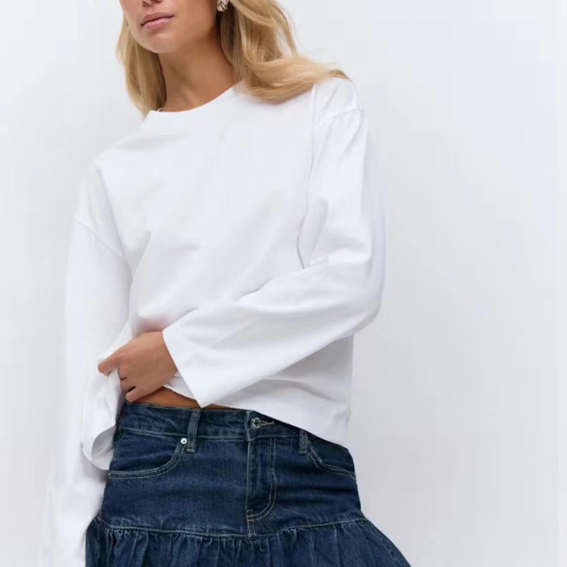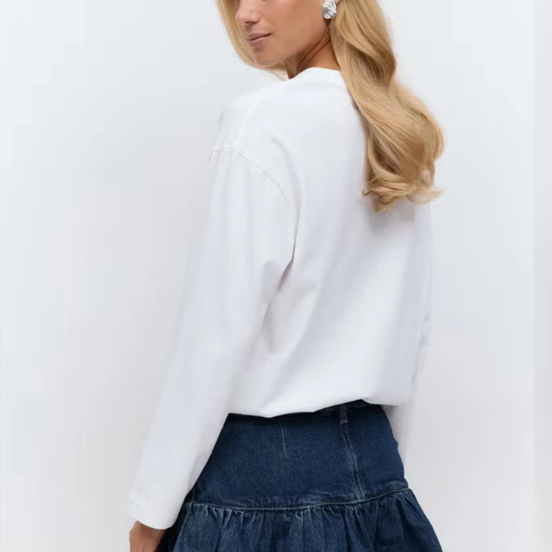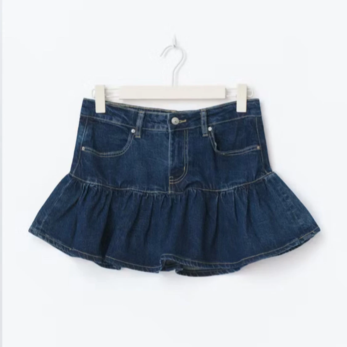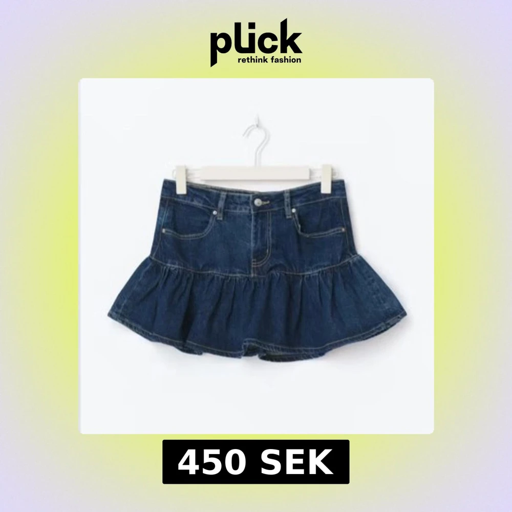 Supersnygg mörkblå jeanskjol med volang och klassiska fickor fram och bak. Ny utan prislapp, ej använd. Skriv om ni har fler frågor💓💓😇😇😇