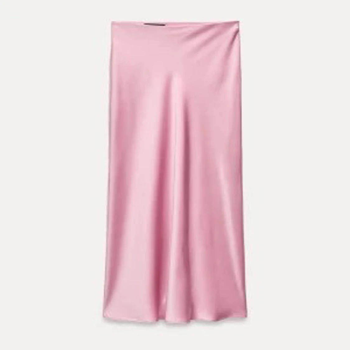 Supersnygg rosa satinkjol från Zaras sommarkollektion för cirka 2 år sedan. Endast använd 1 gång. Lånade bilder skriv för egna! Priset går att diskuteras