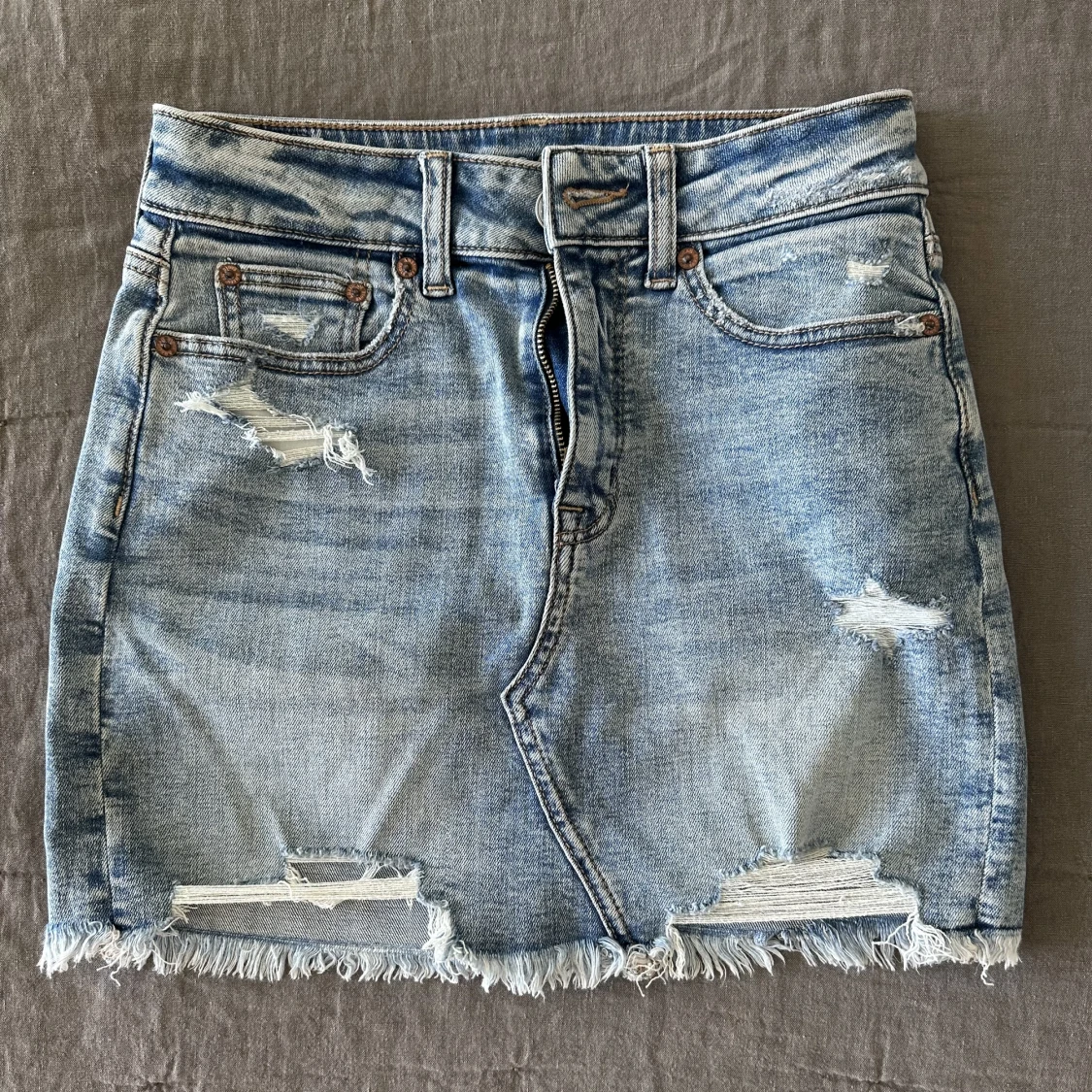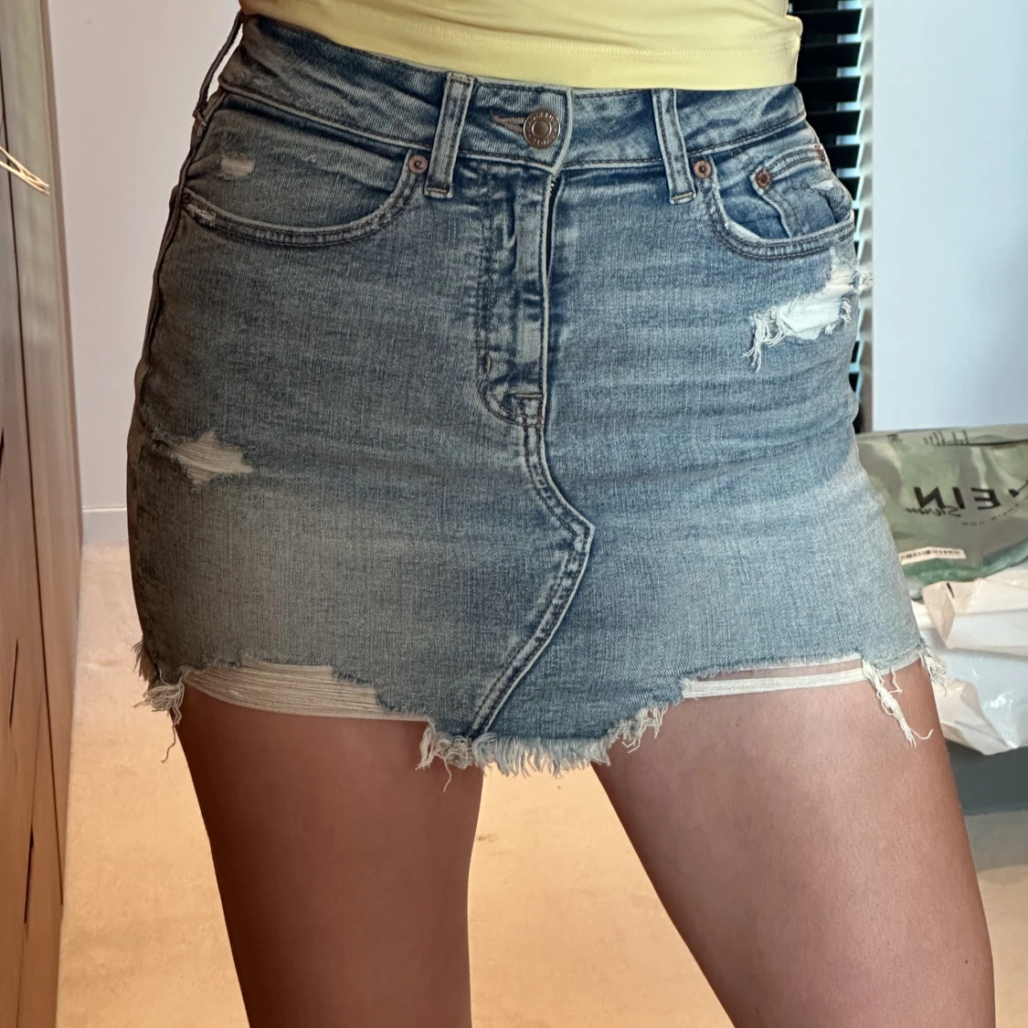 Denim kjol från American Eagle. Super stretch material. Passar dom som har större storlekar. Meddela mig om intresserad.