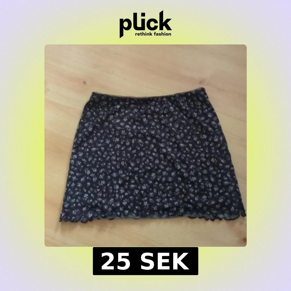 Söt svart kortkjol med blommigt mönster. Den sitter tight.