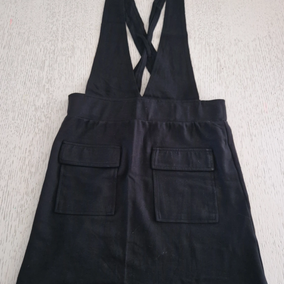 Svart kort hängselkjol från Name It. Storlek 152. Stora fickor framtill och korsade axelband. Kjolen har en enkel och stilren look som passar perfekt till en cool vardagsoutfit. Mjukt och skönt material. ENDAST TESTAD!