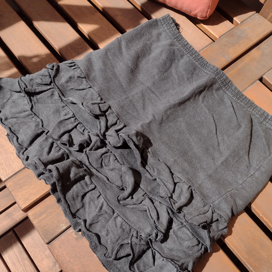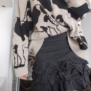 Super gulig svart volang kjol i mjukismaterial som är skön till en kofta nu i höst!🍁 Det står inget märke eller storlek på lappen då det försvunit när den fanns på secondhand butiken. Jag skulle säga att den är i storlek s/m då den passar mig. 😁✨🍂