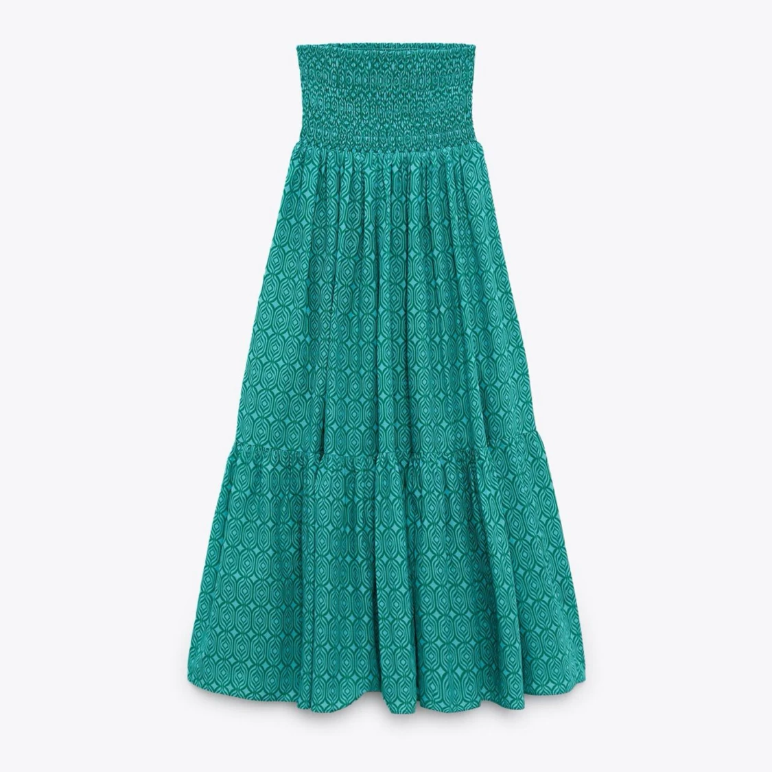 Snygg turkos långkjol med elastisk midja och ett subtilt mönster. Populär från Zara. Vill kolla intresset, hör av er för frågor