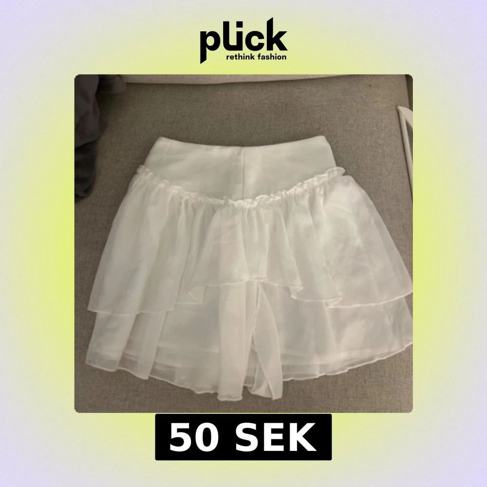 Supersöt vit kortkjol med dubbla volanger och flowig känsla. Kjolen har en hög midja och är gjord i ett tunt, lätt material som ger en drömmig look. Perfekt för dig som gillar romantisk och feminin stil.