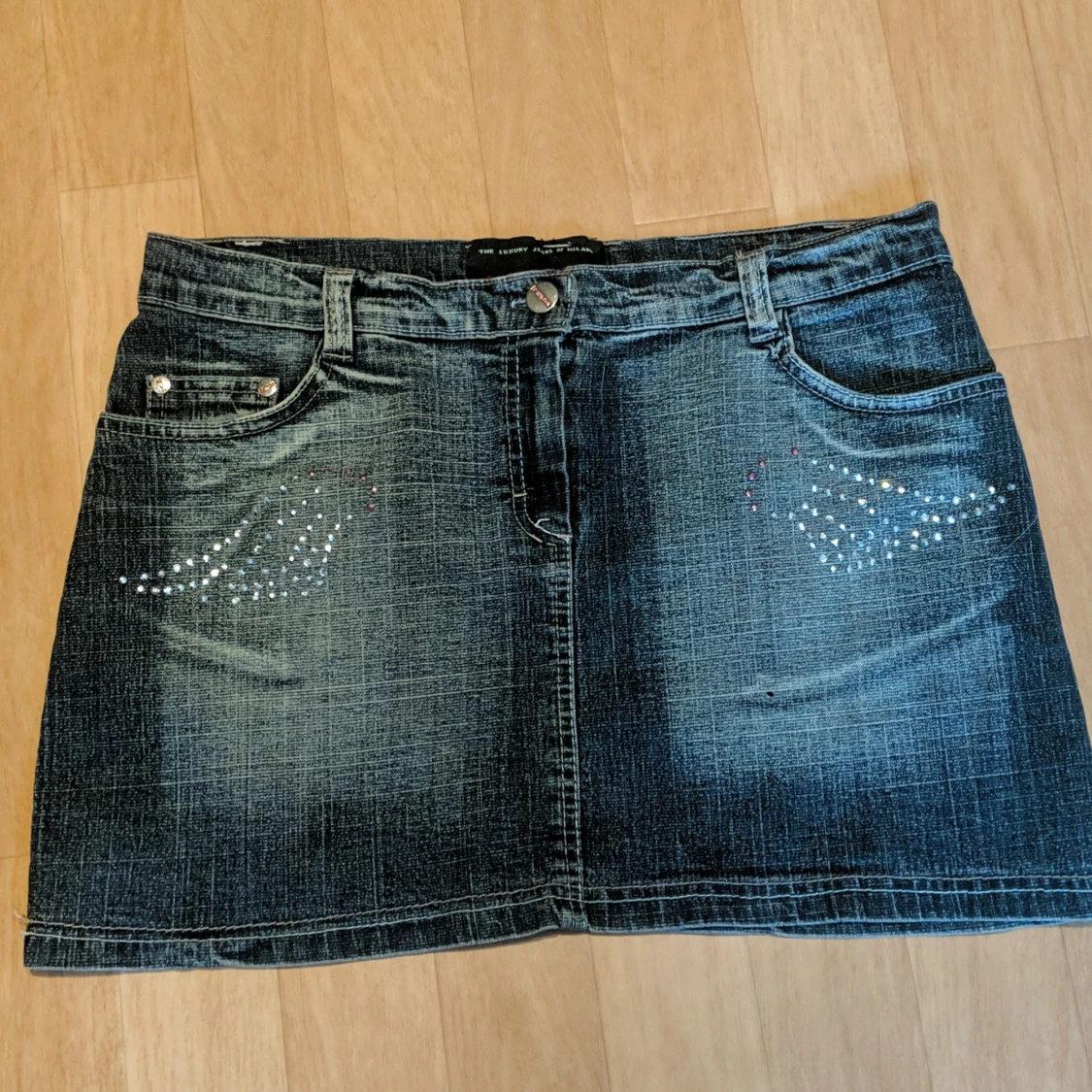 Jeans kjol med diamanter, Ängla vingar. Passar en storlek 38