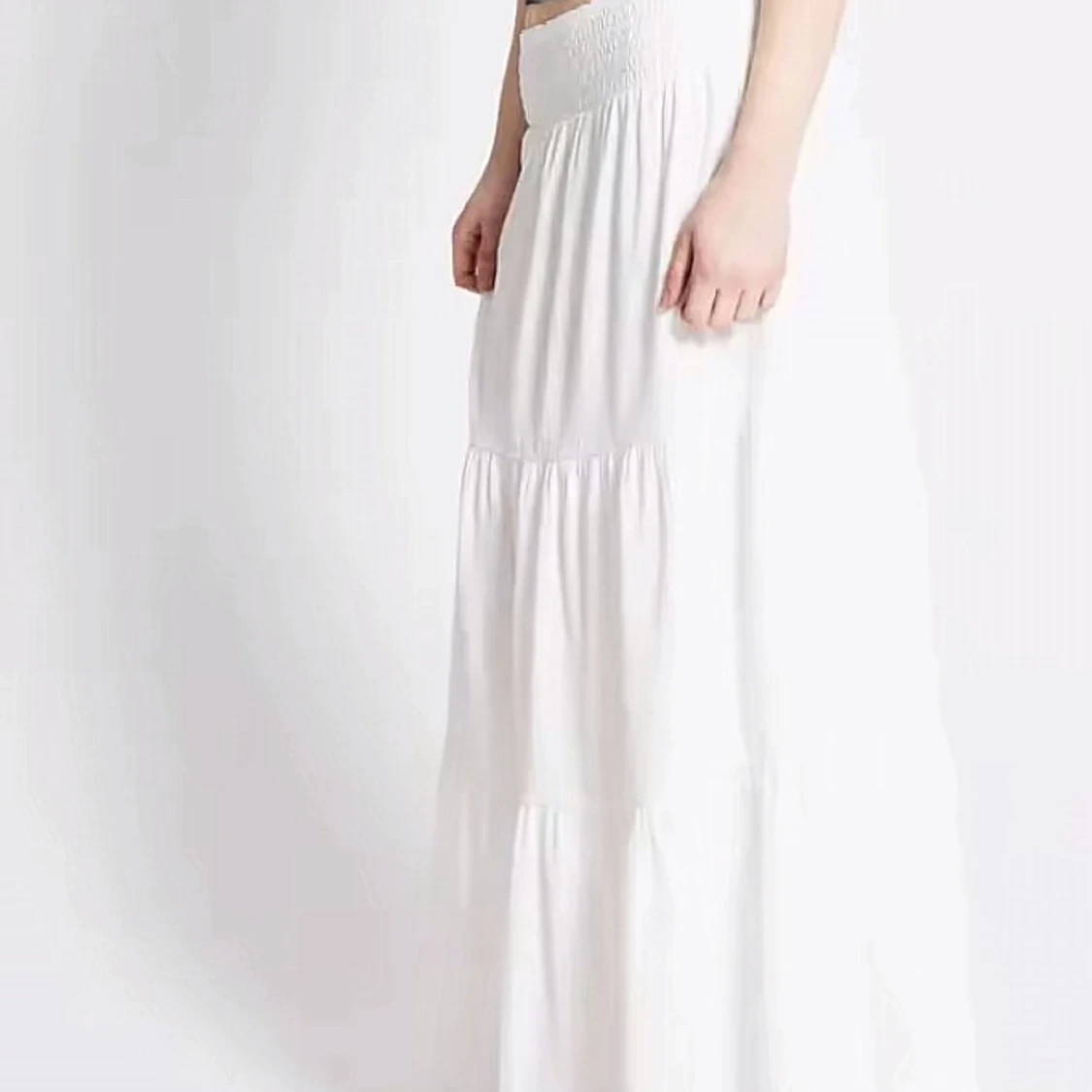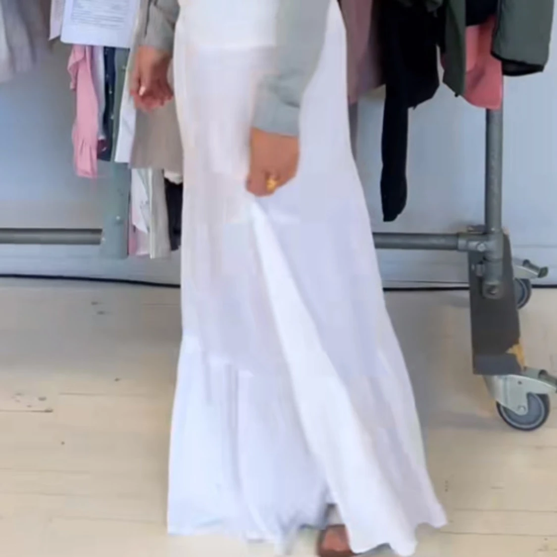 Supersnygg vit långkjol från 157 i storlek XS. Kjolen har en smockad midja och faller i mjuka volanger ner mot golvet. Köparen står för frakten!❣️