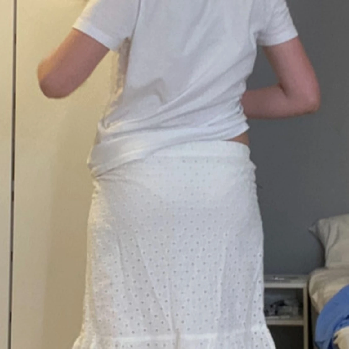 Säljer denhär vita långkjolen med hål ifrån Lindex i storlek 146/152, 10-12 år. Säljer för att den inte kommer till användning eftersom den är för liten