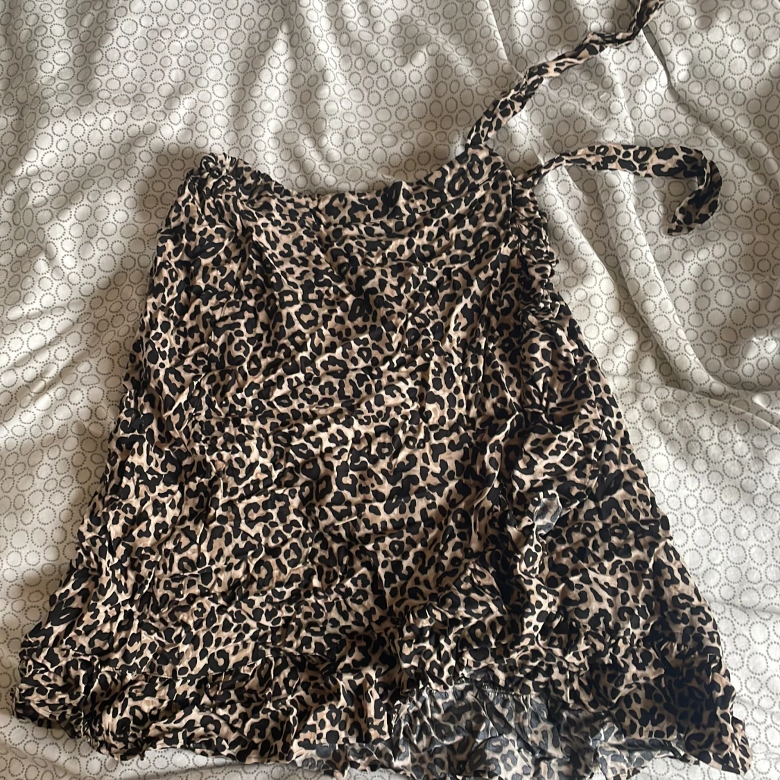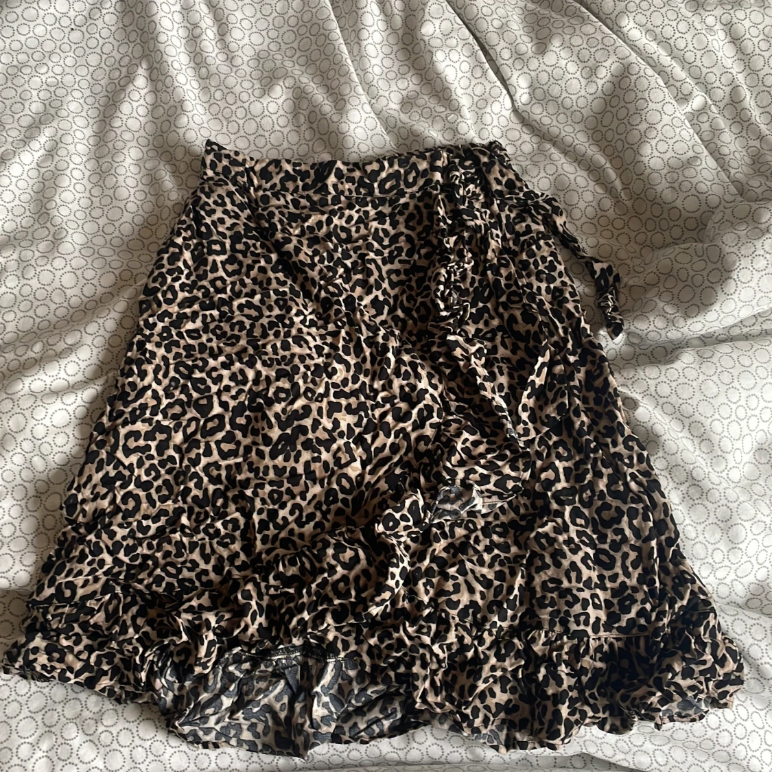 Snygg kortare omlottkjol från Lindex med leopardmönster. Kjolen har volang nedtill och en knytdetalj på sidan. Den är i barnstorlek men passar mig som vanligtvis är xs/s💗