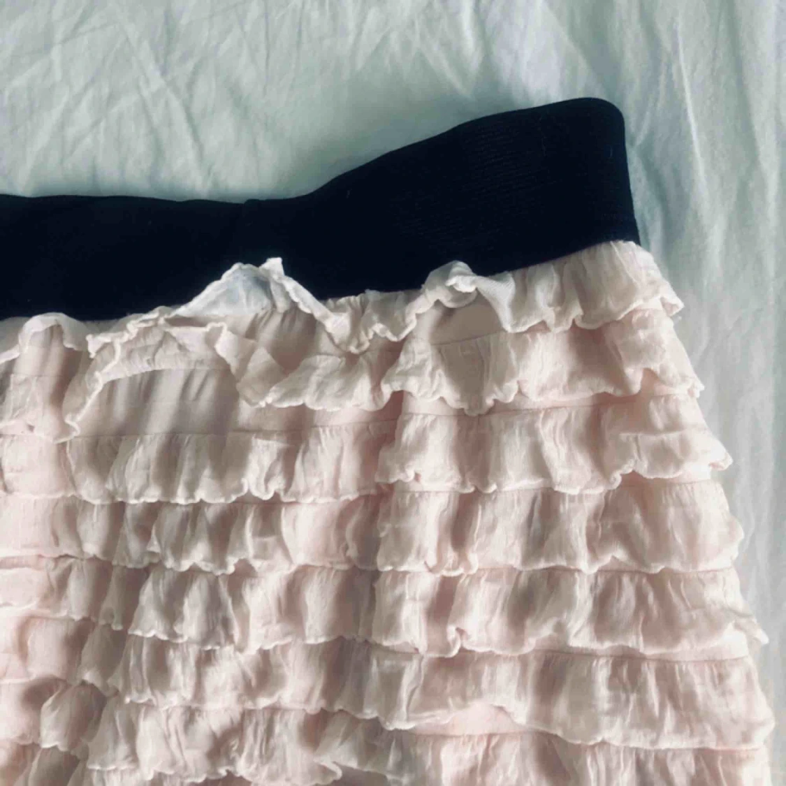Nypris: 500kr Supersnygg kjol i en ljusrosa/beige färg! Använd 2 gånger. Liten i storlek, passar även m och i vissa fall s! Köparen står för frakt