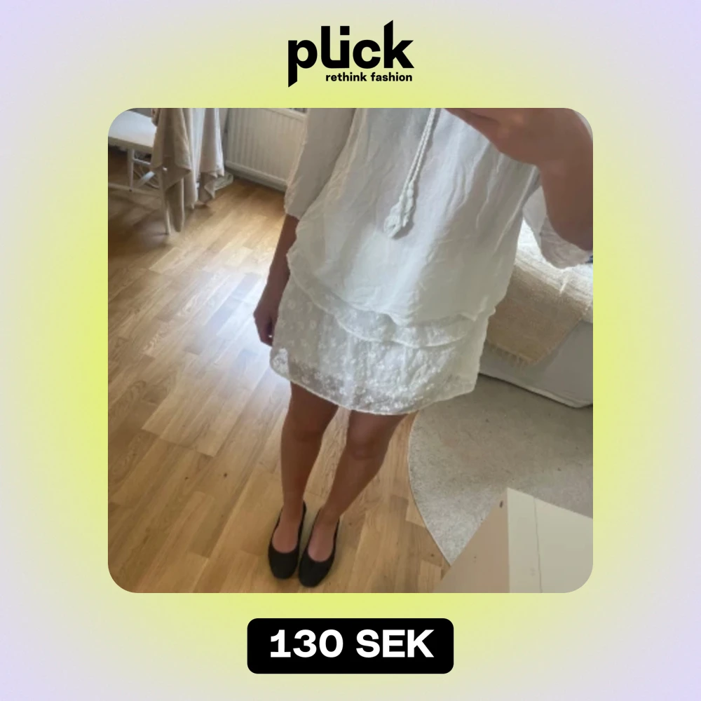 Vit volangkjol med snörning - Säljer en vit kortkjol med flera lager volanger och snörning i midjan. Kjolen har en mjuk och luftig känsla, perfekt för dig som gillar en feminin och lekfull stil. Elastisk midja gör den enkel att ta på och av. Materialet känns som bomull.