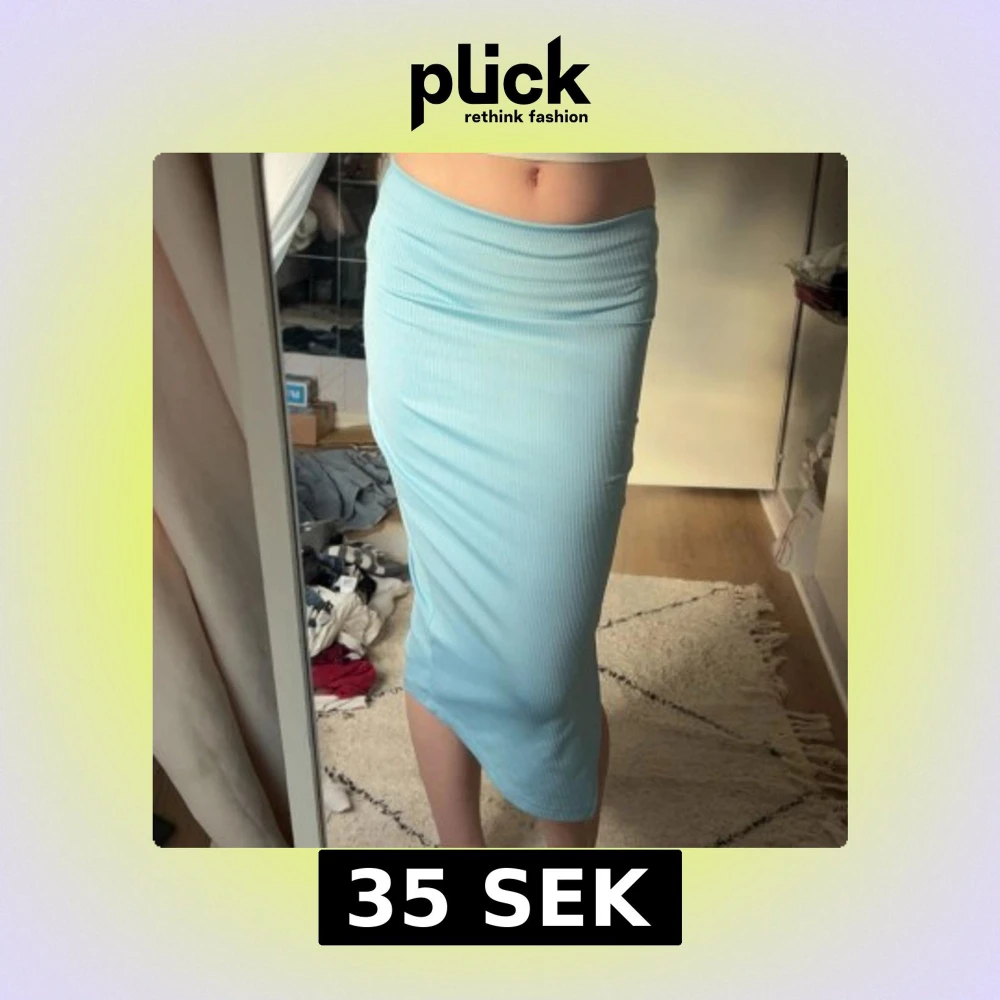 Säljer en ljusblå ribbad långkjol från Shein i storlek XS. Kjolen har en tight passform och en snygg slits på sidan som ger extra edge. Perfekt för dig som gillar stilrena och bekväma plagg med lite extra detalj.